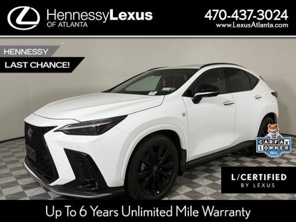 Price applies to in-stock units only and excludes tax, tags, other governmental fees, and customer selected optional items. Internet/Selling price includes Service Fees: dealer service charge of $899; a title service fee of $99. Service Fees total $998. Advertised prices include all applicable manufacturer rebates & incentives which the dealer retains. Unable to combine with any other offers. Dealer not responsible for typographical errors or emissions. Mileage shown is current as of publication date. In transit means that vehicles have been built but have not yet arrived at your dealer. MSRP is not the Internet / Selling Price and does not include Service Fees or any optional dealer installed equipment. Some vehicles offered for sale may be subject to unrepaired manufacturer safety recalls. To determine the recall status of a vehicle, visit https://www.nhtsa.gov/recalls. While every reasonable effort is made to ensure the accuracy of this information, we are not responsible for any errors or omissions contained on these pages. Please verify any information in question with Hennessy Lexus Atlanta.